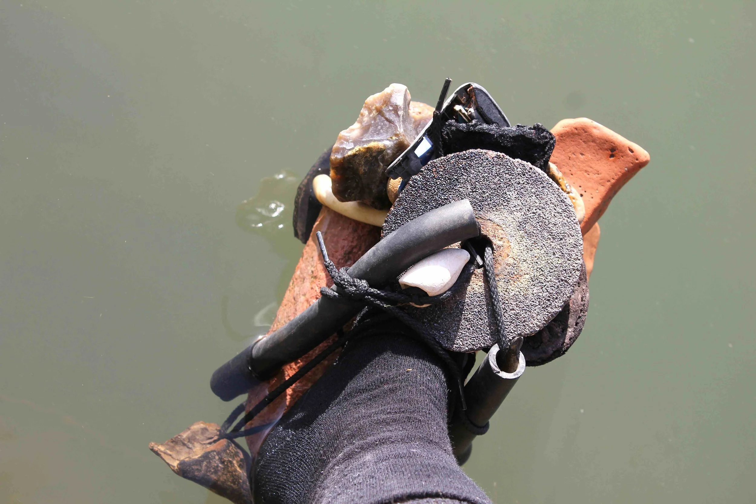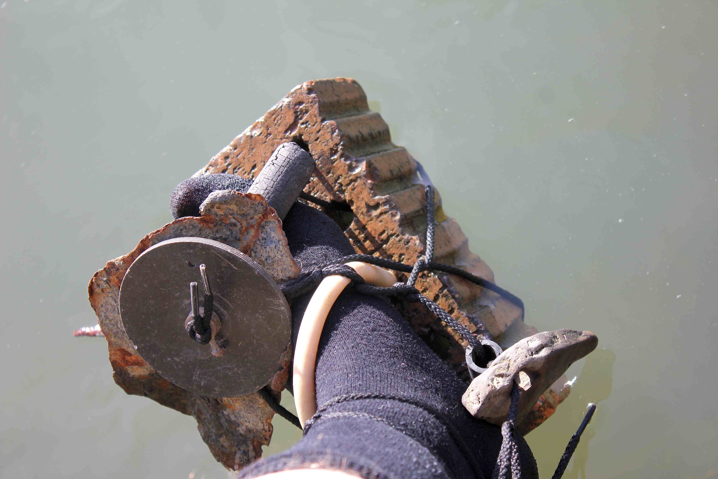 Foreshore slippers: Made on the Thames Foreshore London, the slippers are taken up and dipped in the Thames at Oxford. March 2015