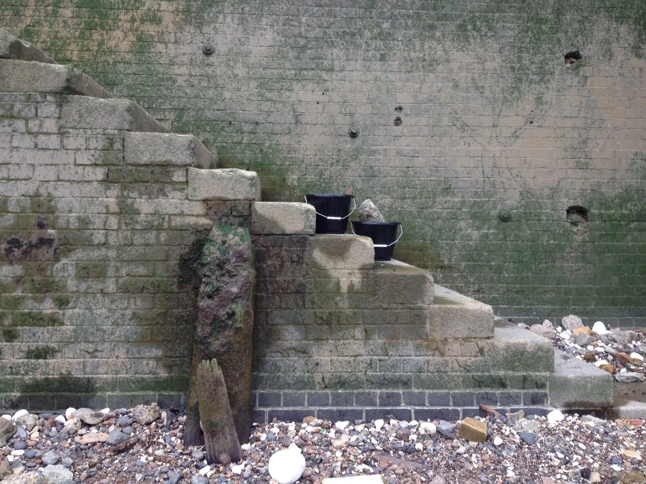 At the Thames the foreshore was washed in the river.