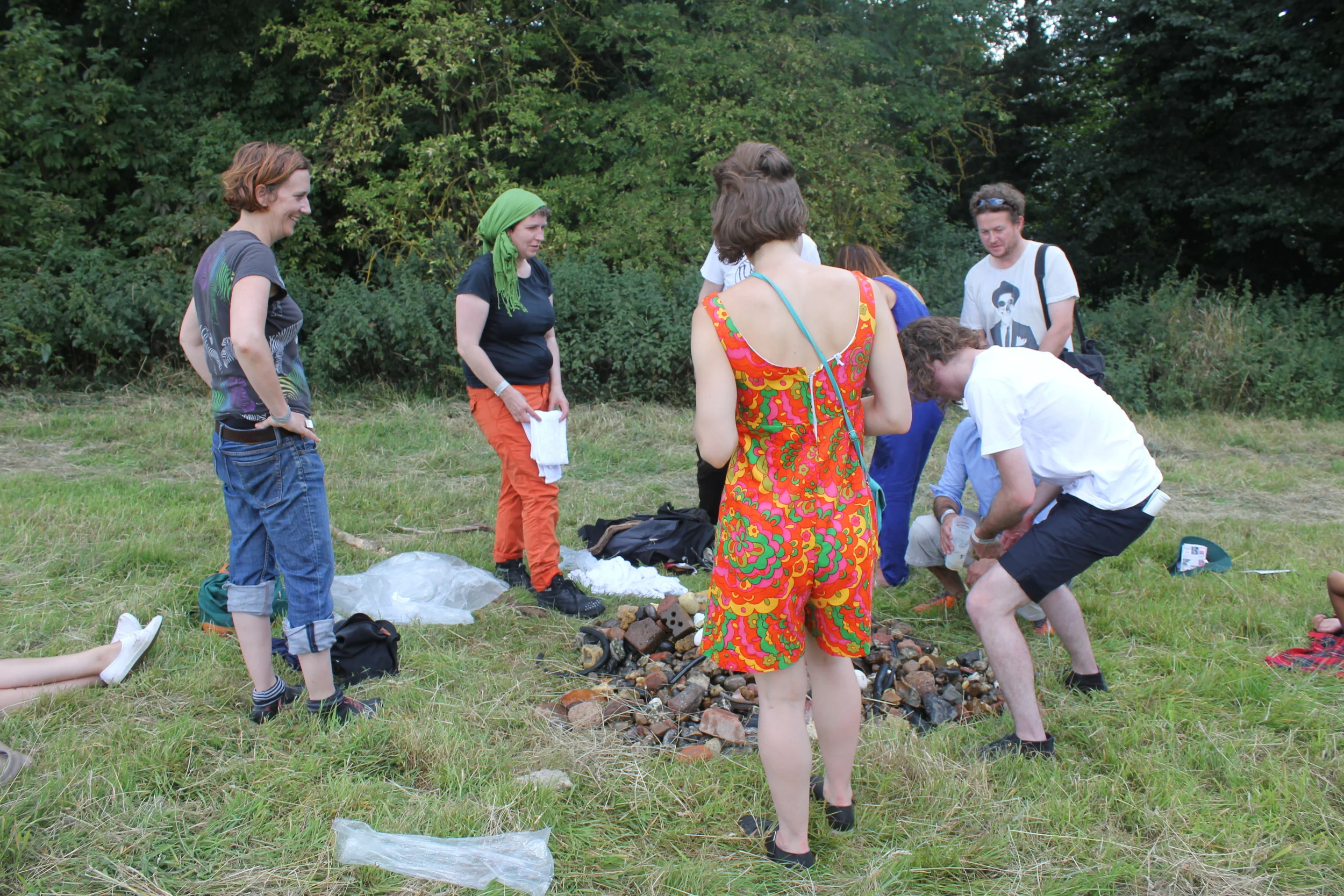 London Thames Foreshore deposited at Braziers Park, Oxfordshire. (above) Selected pieces of foreshore were then carried across the fields in a silent walk. (below)